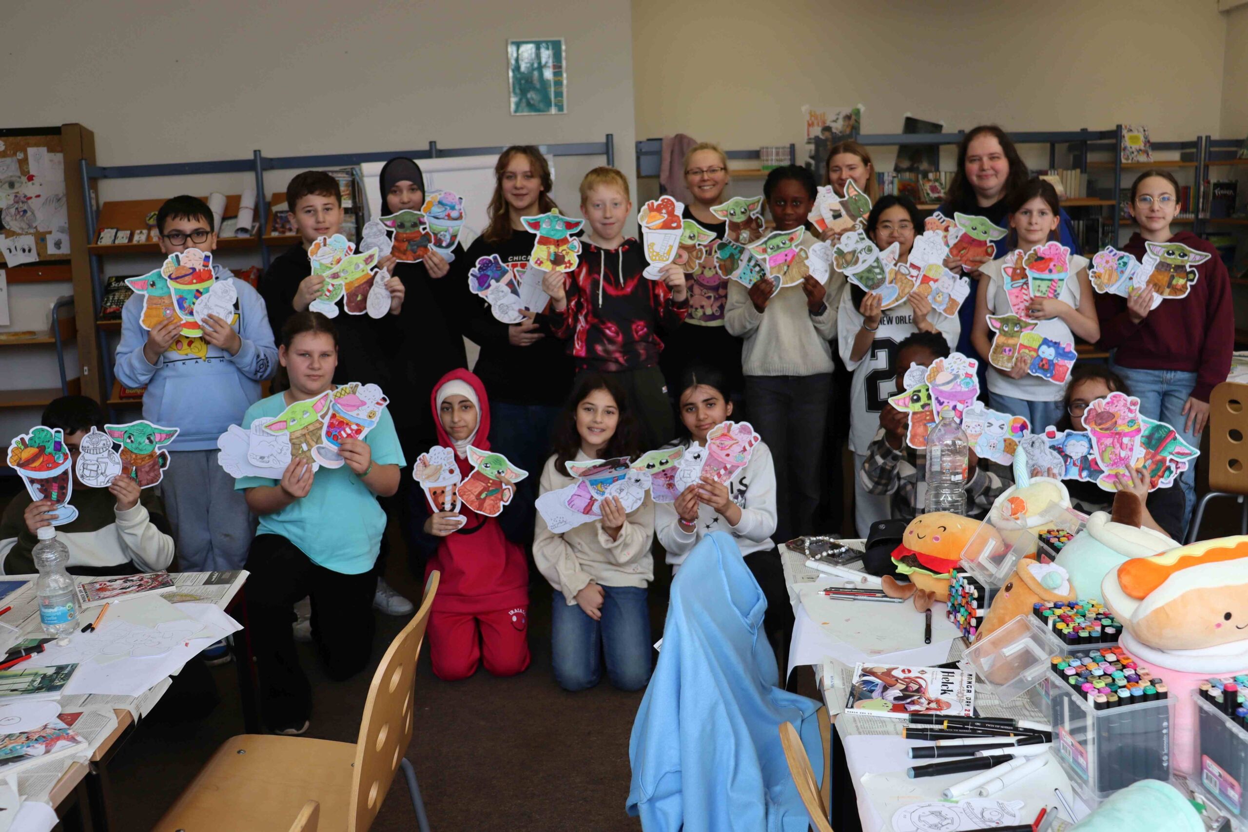 Martin Albrecht2025-11-15T19:34:24+01:00Manga-Workshop in der Schulbibliothek Am vergangenen Dienstag fand in der Schulbibliothek im Zweig Schönefeld der Fasia-Jansen-Gesamtschule erneut der beliebte Manga-Workshop mit der Künstlerin Alexandra Völker statt. Eingeladen wurden Schüler*innen aus den 6. Klassen. Die Teilnehmer*innen konnten verschiedene Manga-Techniken ausprobieren, eigene Figuren zeichnen und ihrer Kreativität freien Lauf lassen. Der Workshop wurde von den Kindern mit großer Begeisterung aufgenommen und sorgte für eine lebendige, kreative Atmosphäre in der Bibliothek. Möglich wurde die Veranstaltung durch die SBA Oberhausen (Schulbibliothekarische Arbeitsstelle Oberhausen) und die Förderung des Kulturrucksacks NRW. Bildergalerie